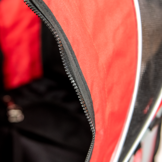 Spacious cabin with two safety leashes, a removable cushion and fabric carrier, and a mesh window for fresh air and a good view.