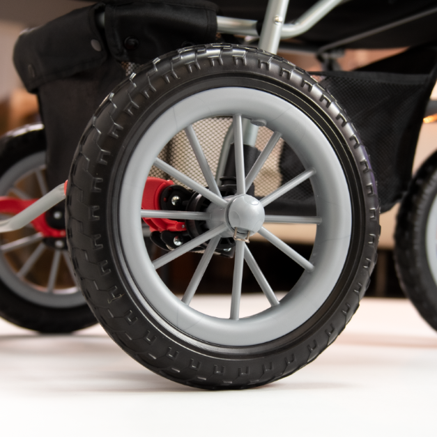 Lightweight yet sturdy, with EFA foam wheels that are maintenance-free and give a smooth ride. Great for town walks and light off-road terrain.