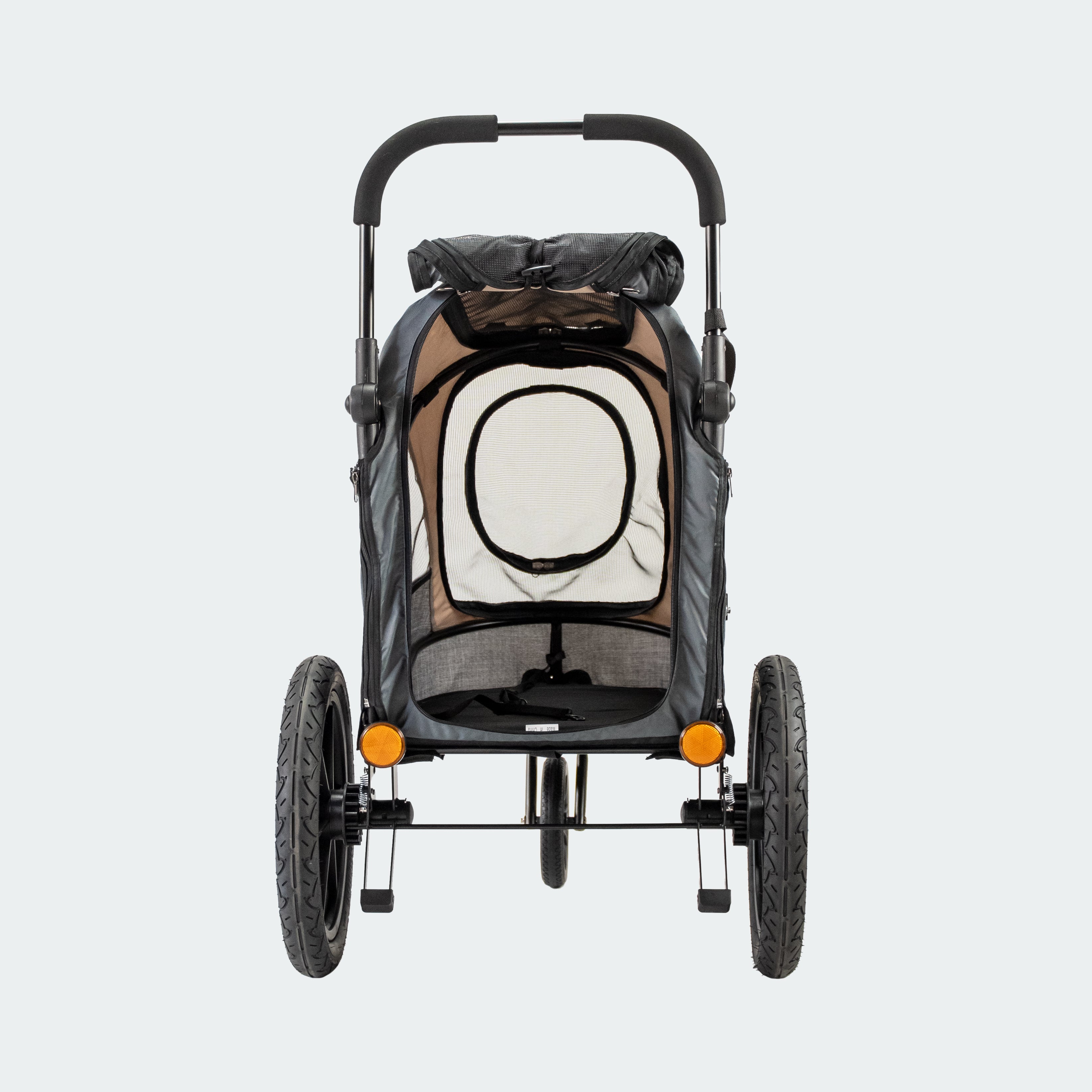 An upgrade on the Sporty Deluxe, the Evolution has improved wheels, stronger brakes, and more versatile entry points. It’s easy to push, smooth to ride in, and thoughtfully designed with dogs and humans in mind.